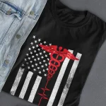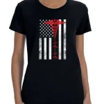 Cool American Flag With Healthcare Design Women’s Black T-shirt. Design by Smartprints.