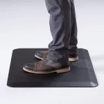 Safco Products 2111BL Movable Anti-Fatigue Mat, 24″ x 36″, Comfortable for Use with Standing or Adjustable Height Desks, Easy to Move and Clean, Black A perfect addition to any active workspace Features 1″ of padding for standing comfort to help relieve the leg pain and foot fatigue that often accompanies standing Comes complete with molded glides on the bottom of the mat which allows the user to grip the mat with their feet (without having to bend over) and slide out of the way when not in use Thick, yet pliable with a discrete design that allows it to easily fit into any workspace without looking bulky Pairs well with standing desks or tables High heels should not be worn with this mat Available in Black to seamlessly blend into most personal workspaces, private offices or collaborative spaces Available in two sizes to accommodate spacing needs Part of the Safco Active Collection: The Safco Active Collection products are designed to promote active movement throughout the day to help combat the negative effects of inactivity in many workplace settings