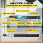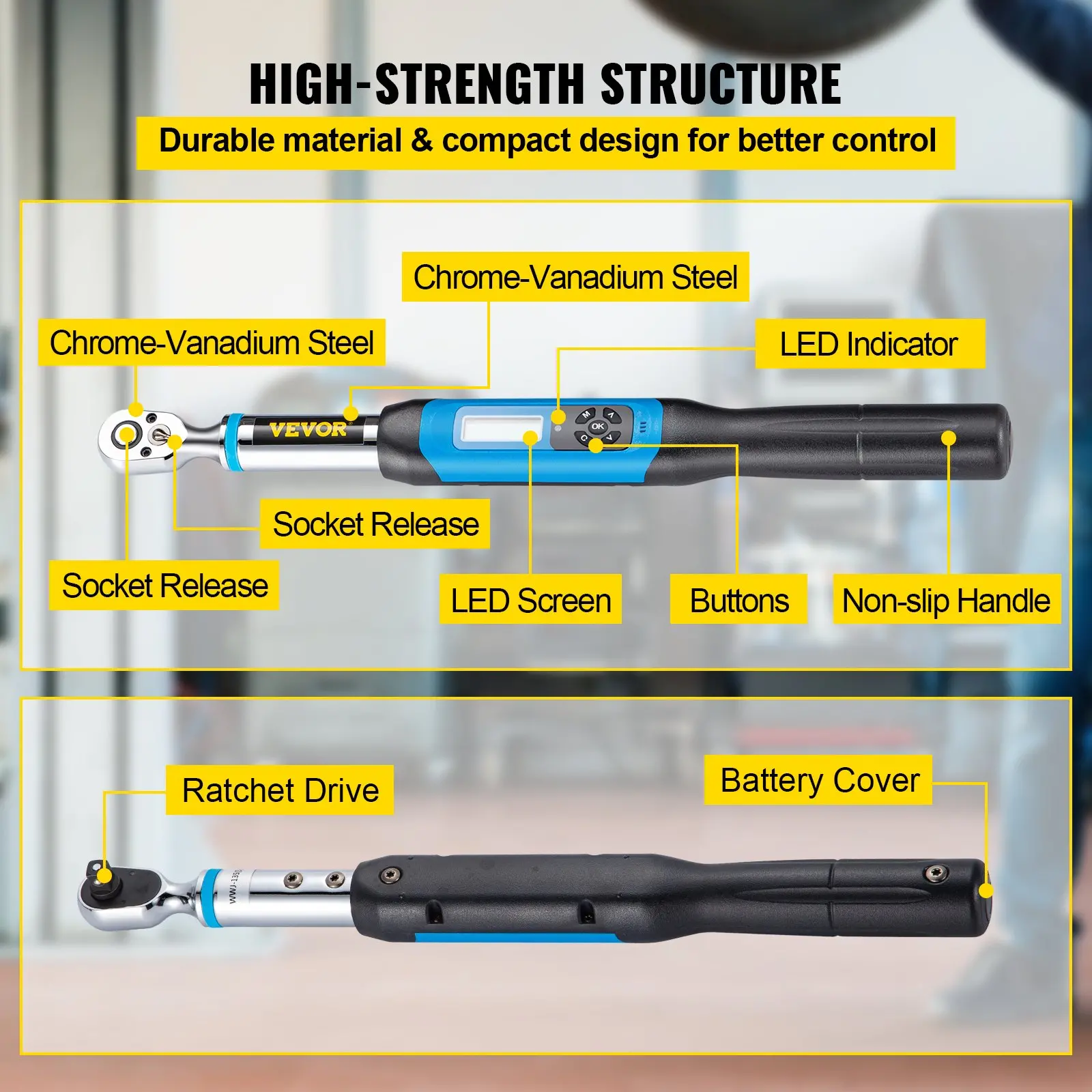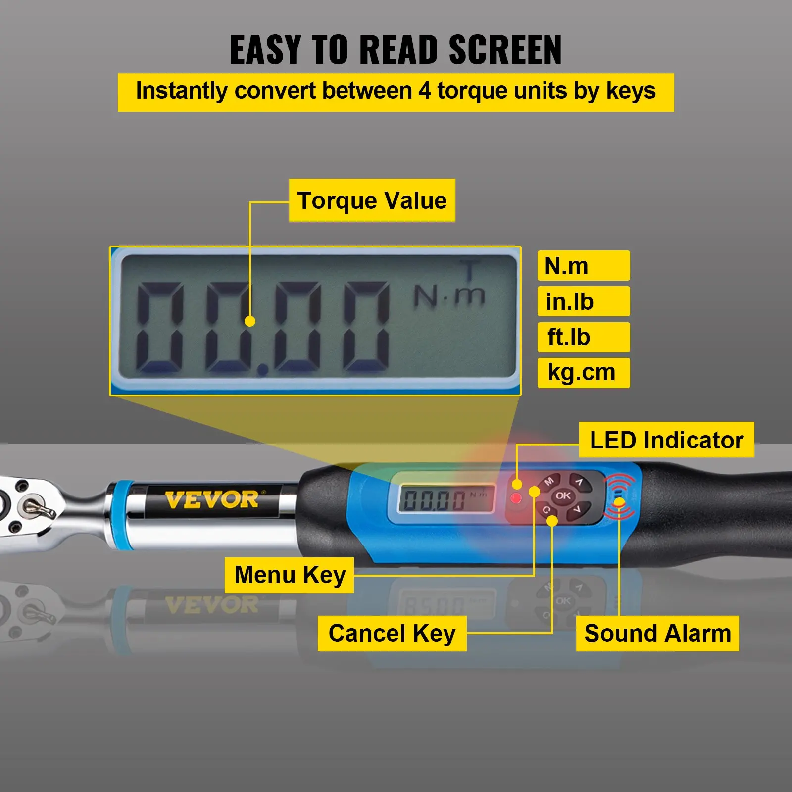 VEVOR Digital Torque Wrench, 3/8″ Drive Electronic Torque Wrench, Torque Wrench Kit 1.1-22.12 ft-lbs Torque Range Accurate to 2%, Adjustable Torque Wrench w/ LED Display and Buzzer, Socket Set & Case