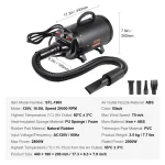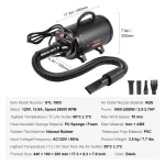 VEVOR Dog Dryer, 2000W/2.7HP Dog Blow Dryer, Pet Grooming Dryer with Adjustable Speed and Temperature Control, Pet Hair Dryer with 4 Nozzles and Extendable Hose, Black