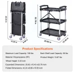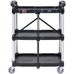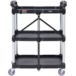 VEVOR Foldable Utility Service Cart, 3 Shelf 165LBS Heavy Duty Plastic Rolling Cart with Lockable Wheels, Ergonomic Handle, Portable Garage Tool Cart for Warehouse/Office/Home(25.62″x15.43″x32.76″)