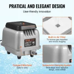 VEVOR Linear Air Pump, 90L/Min Air Flow Septic Aerator Pump, Aeration System for 1/4 Acre 10 FT Deep Ponds, Water Gardens, Waste Treatment, Septic Tanks, Aquariums, Seafood Restaurants, Fish Farms