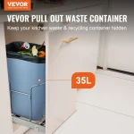VEVOR Pull-Out Trash Can, 35L Single Bin, Under Mount Kitchen Waste Container with Slide, Handle and Door Mounting Kit, 110 lbs Load Capacity Heavy Duty Garbage Recycling Bin for Kitchen Cabinet, Sink
